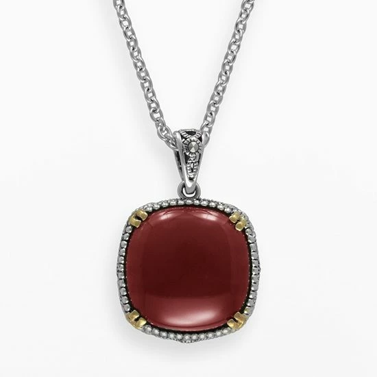 A bold agate stone set in an ornate setting with 14k gold accents makes this pendant a standout choice.