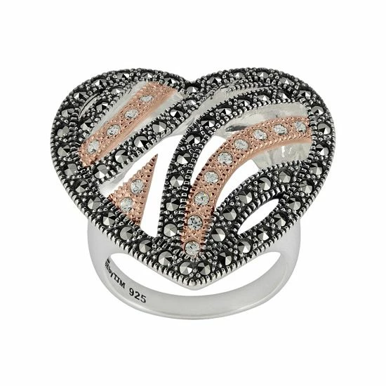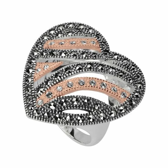Marcasite stones, crystals and beaded details adorn this open-worked heart ring for a lovely look.