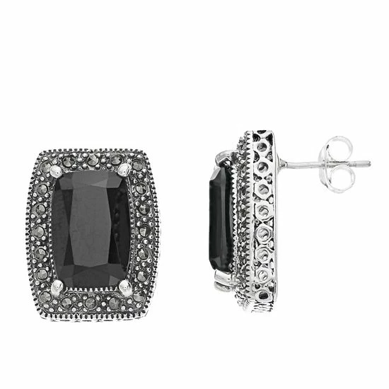 Sparkling with marcasite accents, these classic onyx button earrings are a glamorous finishing touch to any look.