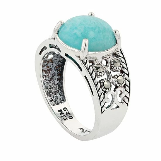 A round amazonite cabochon steals the show on this vintage-inspired Lavish by TJM dome ring.