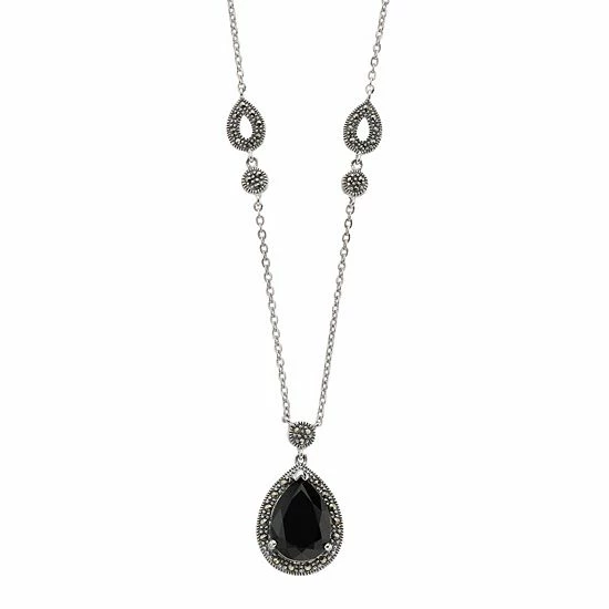 Add a touch of bold style to your everyday wardrobe with this Lavish by TJM onyx and marcasite teardrop necklace.