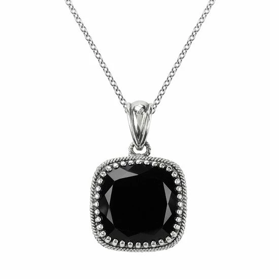 A black onyx stone adorned with marcasite accents along the side make this pendant a bold addition to any ensemble.
