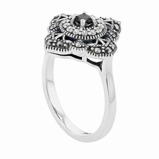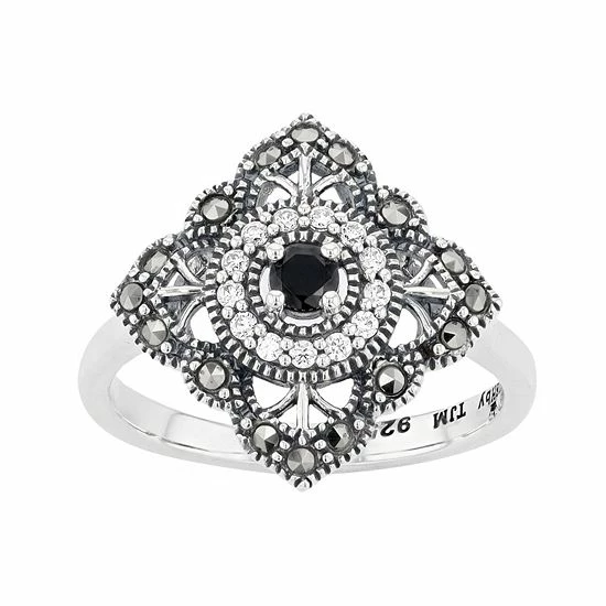 Decorated with a black spinel center stone and cubic zirconia accents, this Lavish by TJM ring adds a touch of ornate style to your favorite outfits.