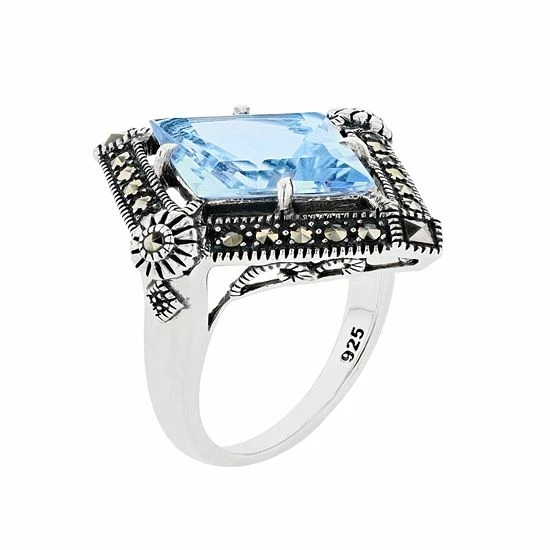 Your style will stand out when you’re wearing this bold and beautiful blue quartz and marcasite ring from Lavish by TJM.