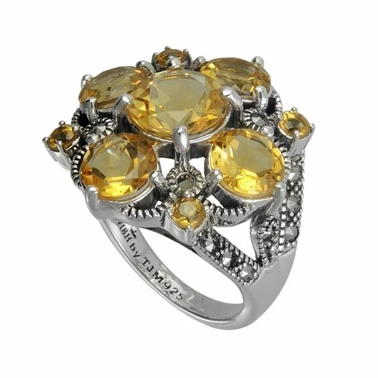 Dare to dazzle with this gorgeous genuine citrine and maracasite stone ring.