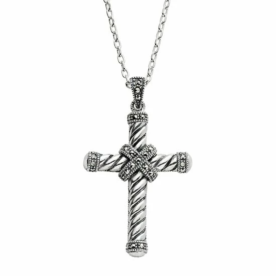 Adorn yourself with this Lavish by TJM cross pendant. Marcasite stones grace it with a lovely glow. You’ll look simply divine wearing this sterling silver necklace with your ensemble.