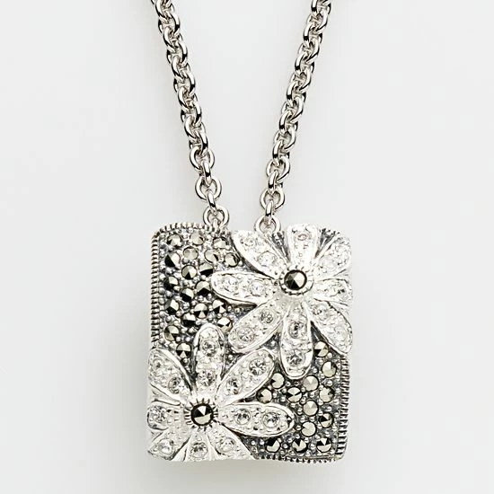 Fabulously feminine. Dazzling crystals and marcasite stones make this floral pendant the perfect pick. Illuminate your ensemble with this lovely sterling silver necklace.