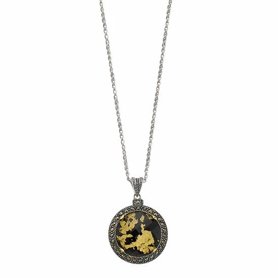 Complete your captivating look with this Lavish by TJM pendant necklace. Featuring a gold leaf and black onyx doublet surrounded by marcasite accents, it complements your wardrobe in a uniquely stylish way.
