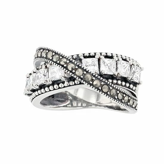 Light up your look with the dazzling style of this Lavish by TJM cubic zirconia and marcasite crisscross ring.