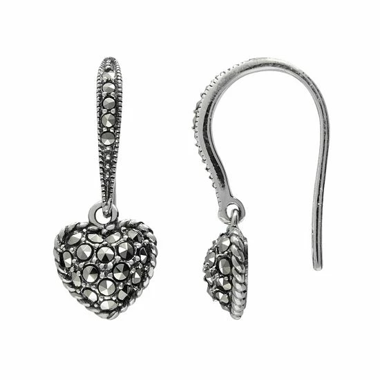 Add a lovely touch to every look with these marcasite-covered heart drop earrings.