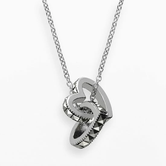Interlocking heart-shaped rings lined with marcasite stones make this sterling silver pendant a chic pick.