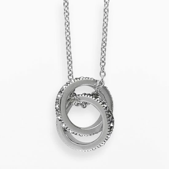 Interlocking rings lined with marcasite stones make this sterling silver pendant a chic pick.