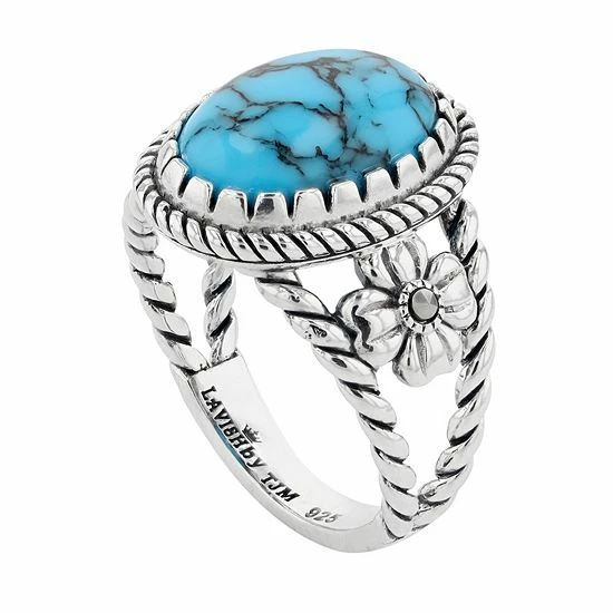 An oval-shaped, lab-created turquoise cabochon steals the show on this stylish Lavish by TJM dome ring.