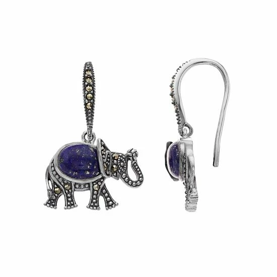 Enhanced with lapis lazuli center stones and marcasite accents, these Lavish by TJM elephant earrings are a fun and fashionable pair.