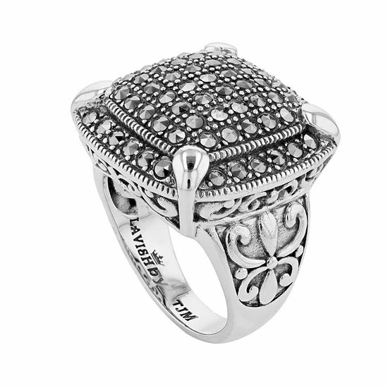 Adorned with marcasite gemstones, this Lavish by TJM cushion ring is an elegant accessory that complements any outfit.