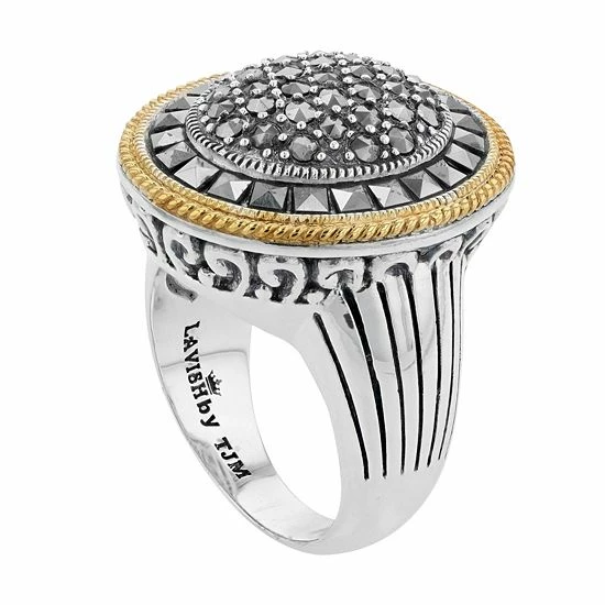 Adorned with marcasite gemstones, this Lavish by TJM oval ring is an elegant accessory that complements any outfit.