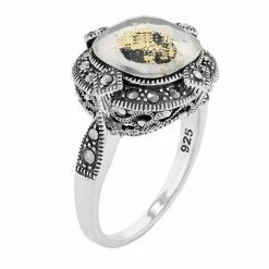 Lavish By TJM Sterling Silver Crystal Gold Leaf Black Onyx Doublet & Marcasite Drop Earrings